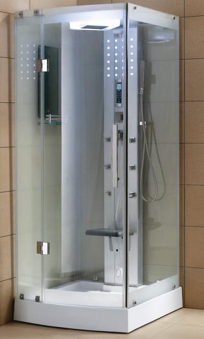 Componenti: Soffione, luci, specchio, mensola, ventola.