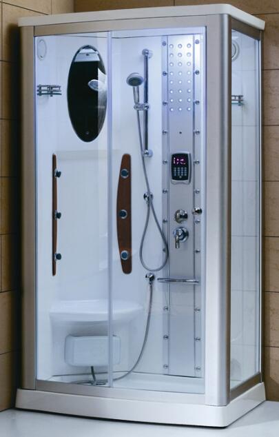 Componenti: Soffione doccia, Massaggio Agopuntura, Massaggio Piedi, Seduta, Colonna di Controllo, Luci, Mensole, Ventola, Specchio.
