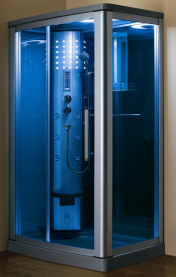 Componenti: Soffione doccia, Massaggio Agopuntura, Massaggio Piedi, Seduta, Colonna di Controllo, Luci, Mensole, Ventola, Specchio.