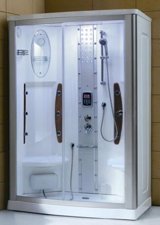 Componenti: Soffione doccia, Massaggio Agopuntura, Massaggio Piedi, Seduta, Colonna di Controllo, Luci, Mensole, Ventola, Specchio.