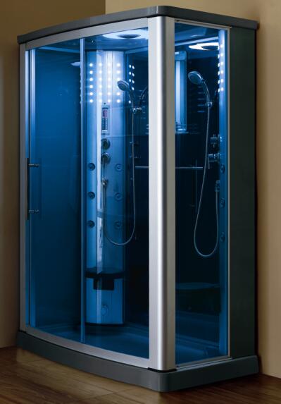 Componenti: Soffione doccia, Massaggio Agopuntura, Seduta, Colonna di Controllo, Luci, Mensole, Ventola, Specchio.