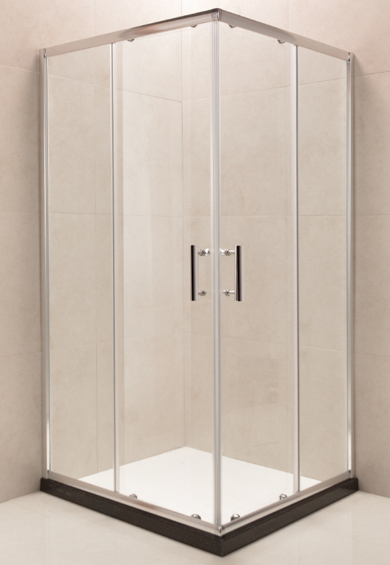 Componenti: Profilo in alluminio opaco, Vetro temperato da 5 mm, Impugnatura in plastica, Rulli singoli, Vassoio con telaio in ferro sotto la vasca.