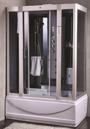 Componenti: doccia superiore, doccia con maniglia scorrevole, plafoniera, lampada di fondo, idromassaggio, massaggio ai piedi, ventilatore, altoparlante, radio, pulsante di accensione / spegnimento, ricevitore telefonico, rivestimento vetro, supporto, barra a torre.