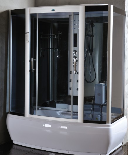 Componenti: doccia superiore, doccia con maniglia scorrevole, plafoniera, lampada di fondo, idromassaggio, massaggio ai piedi, ventilatore, altoparlante, radio, pulsante di accensione / spegnimento, ricevitore telefonico, rivestimento vetro, supporto, barra a torre.
