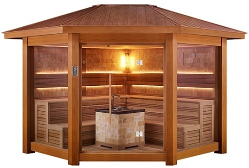 LEGNO: Cedro rosso, sistema di controllo GY160, con pietra gialla al rosone, stufa sauna Havea 13.5KW con telaio in legno, striscia LED.