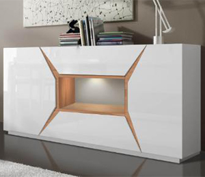 Madia composta da MDF con verniciatura lucida e da MDF con impiallacciatura in rovere.