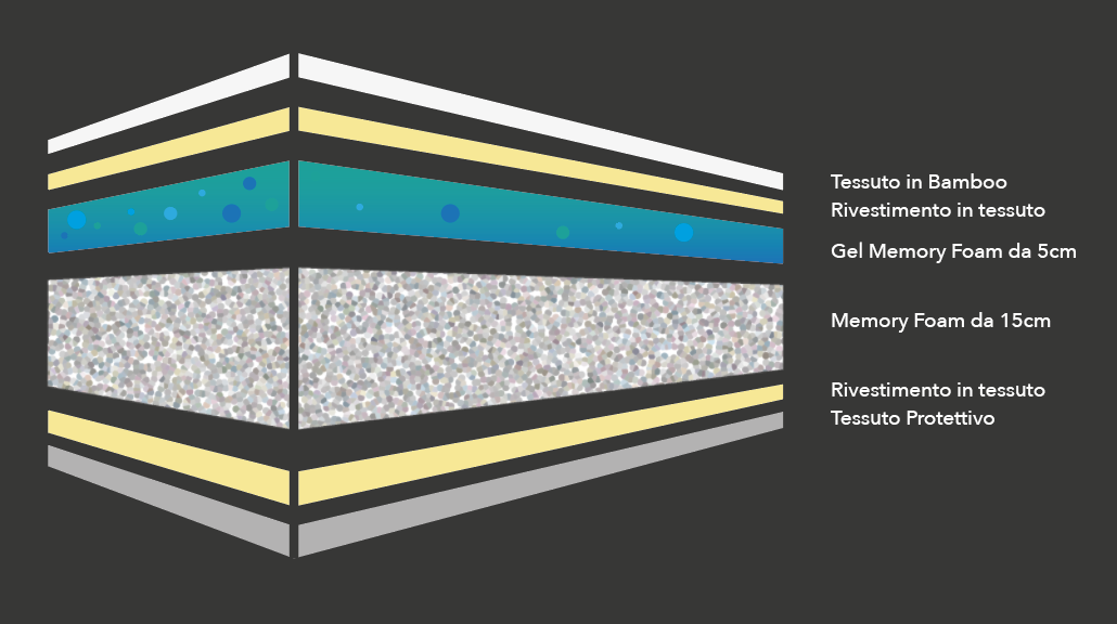 Schiuma Memory Gel H2 Aloe densità 60 kg/m3 con elasticità puntuale.