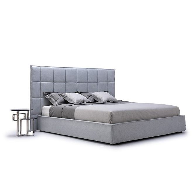 Design evocativo, leggero e prezioso, una personalità da palcoscenico che accoglie il relax di ogni notte. Esclusivo grazie alla testata alta che si innesta nel giroletto formando un morbido equilibrio geometrico.