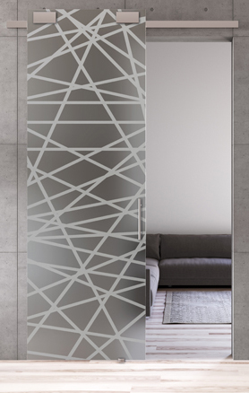 La porta Glass Abstract è disponibile con apertura scorrevole esterno muro plana.