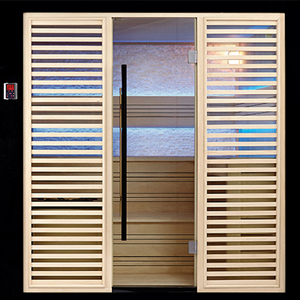 Componenti: Termo-Igometro, Clessidra, Botte, Mestolo di Legno, Stufa Sauna, Striscia di Led, telaio della stufa in pietra gialla di colofonia.