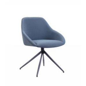 Sedia da pranzo con rivestimento in tessuto e gambe in metallo rifinite di color grigio scuro.