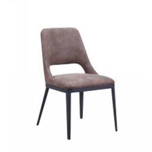 Sedia da pranzo con rivestimento in pelle finta PU e gambe in metallo dipinte di blu.