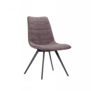 Sedia da pranzo con rivestimento in tessuto e gambe in metallo dipinte di color nero.