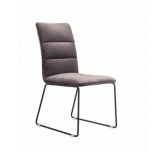 Sedia da pranzo con rivestimento in ferro con tessuto e gambe in metallo dipinte di color nero.