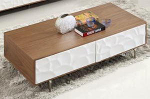 Tavolo da caffè in MDF con impiallacciatura di noce e pittura in avorio opaco.