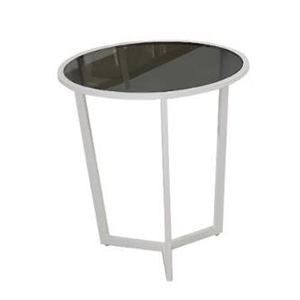 Tavolo da caffè col piano in vetro temperato da 8mm e base rivestita con polvere bianca.