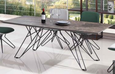 Tavolo da pranzo in MDF color grigio opaco, gambe in metallo dipinte color grigio.
