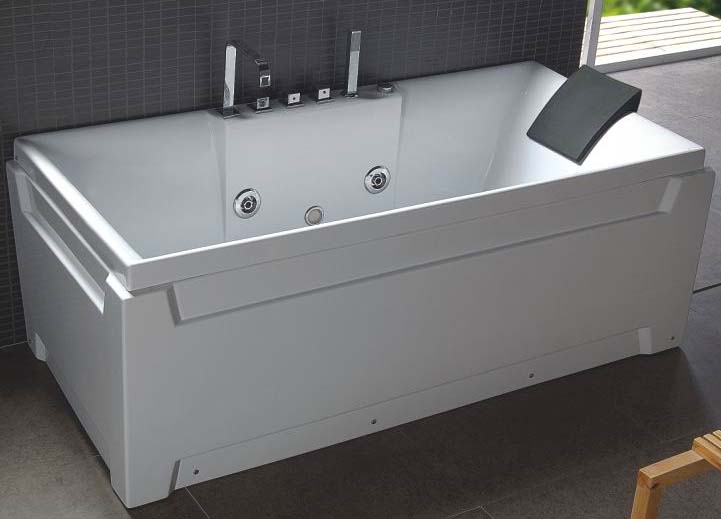 Componenti: vasca, rubinetto, cuscino, jacuzi, struttura in acciaio inox sotto vasca, luce subacquea.