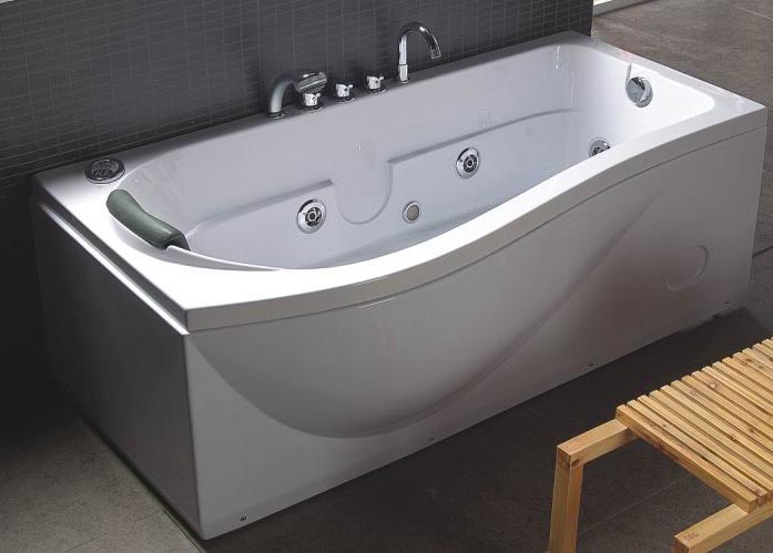 Componenti: vasca, rubinetto, cuscino, jacuzi, struttura in acciaio inox sotto vasca, luce subacquea.